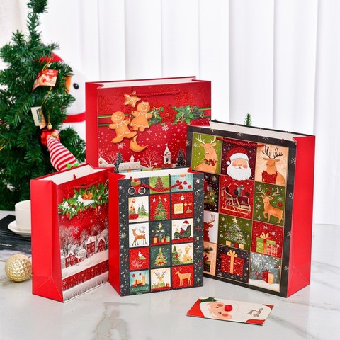 حقيبة هدايا عيد الميلاد بتصميم نافذة مفتوحة، حقيبة تغليف للحلوى للحفلات، حقيبة هدايا كرتونية بتصميم سانتا كلوز وزهور للبيع بالجملة